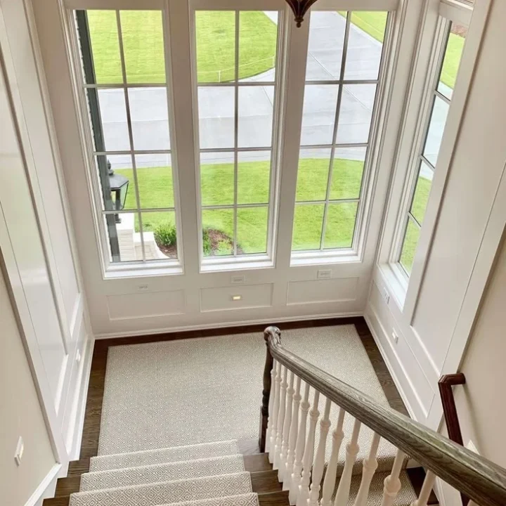 Contemporary design of windows is all about a balance between form and functionality and this is precisely what the window installation is all about. The uncluttered lines, the tall white frames and wide panes fill this area with natural light and the interior gives out an open airy effect that makes the interior and exterior meet. Instead of cluttering the stair-case with the cumbersome frames and the excessive details, the simple design allows the sight and the brightness to assume the center stage. All windows are tailored to the architectural specifics, which means that they fit like a glove and are sleek and smooth to the eye, but they also allow as much daylight as possible to be used and be energy-efficient at the same time.